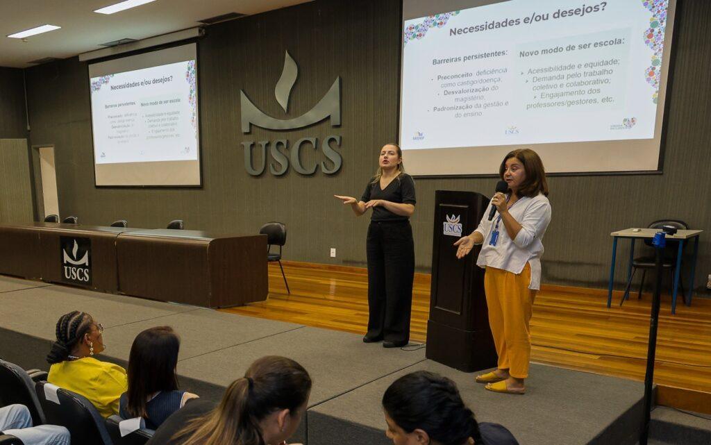 A Virada Inclusiva de São Caetano do Sul começou nesta segunda (1/12) com reflexões sobre o discurso e a prática da inclusão, abordando as transformações necessárias para a garantia de direitos das pessoas com deficiência. Esse foi o tema da palestra de abertura proferida pela professora Elizabete Cristina Costa Renders, da USCS (Universidade Municipal de São Caetano do Sul), que abordou a inclusão nos processos de ensino e aprendizagem. Na sequência, Cláudia Regina Vieira, professora da UFABC (Universidade Federal do ABC) discorreu sobre a política de educação bilíngue para surdos.